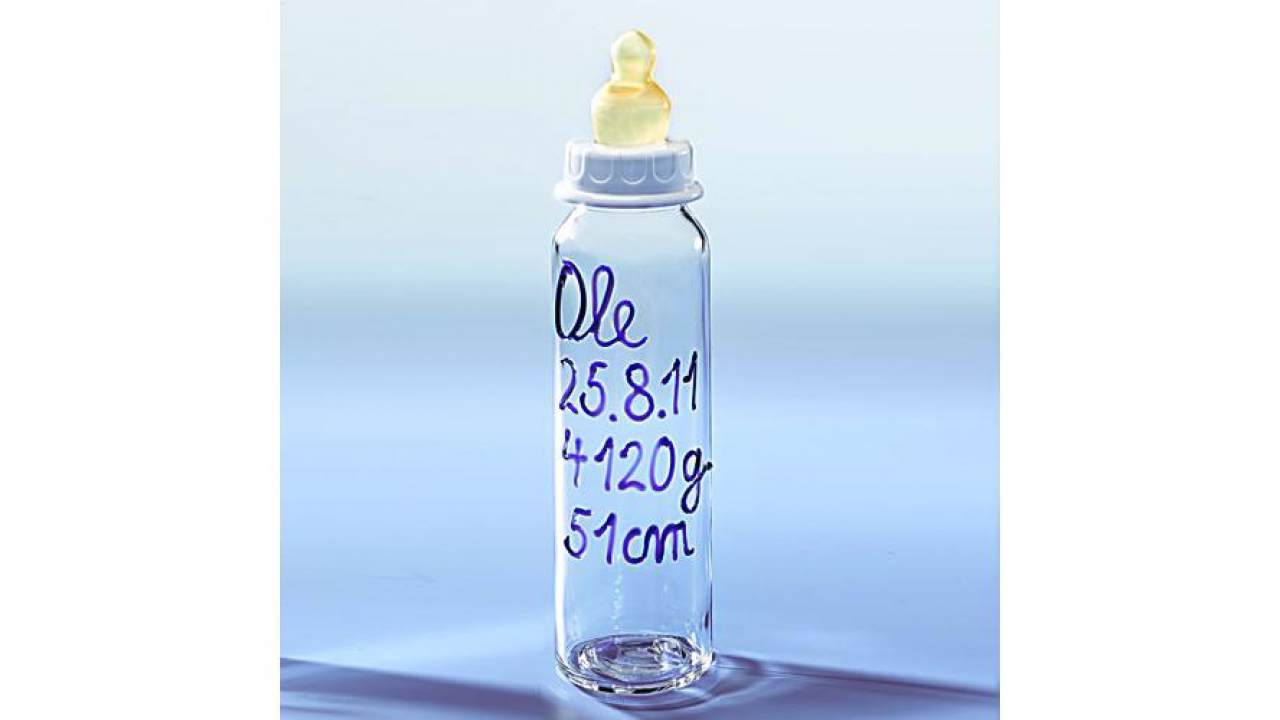 Biberon en verre - Prénom, Naissance, Taille, Poids